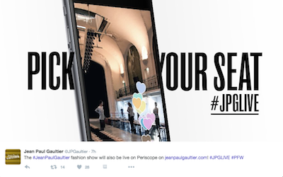 Jean Paul Gaultier provides perspectives on couture show through Periscope