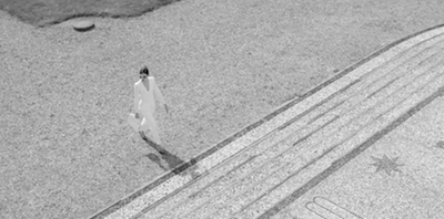 They approach one another and exchange pleasantries before she takes out a small recording device and they begin to talk. The subject of the conversation is not shared with the viewer, but the chemistry between the pair becomes apparent as clips of romantic interactions at a hotel are juxtaposed with the interview.