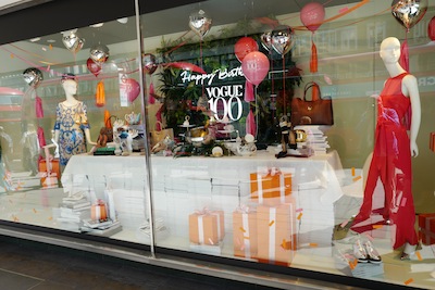 The participating brands have placed the magazine’s Vogue 100 logo in their windows and in some cases have featured covers of Vogue.