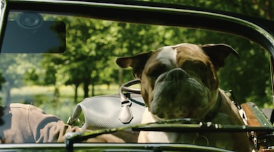 Number two suggests selecting a motoring companion that is good company. After the rule is introduced, the man is seen patting the head of Louie, an English bulldog, seated in the passenger seat.