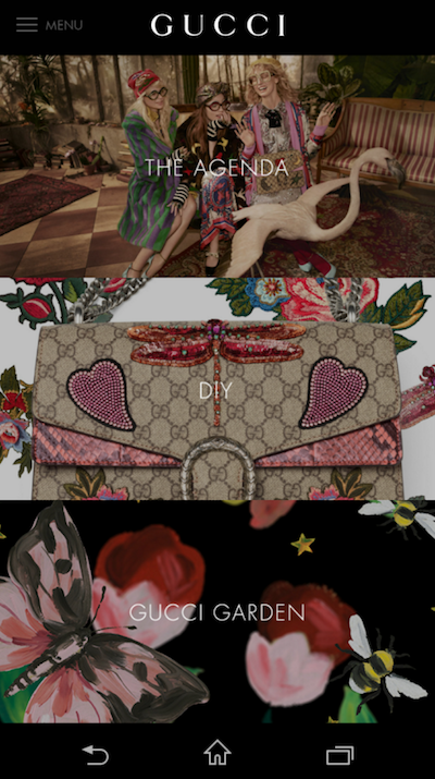 Gucci has operated a branded app since 2011. In its first versions the app, Gucci’s consumers could browse editorial content and shop featured looks directly from their devices (see story).