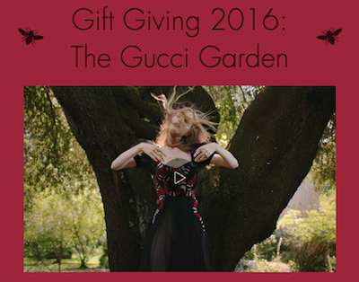 Gucci’s email tells the recipient that its Gift Giving 2016 campaign is set in the Garden of Ninfa, located near Rome. Although the video cannot be viewed directly in the email, Gucci alerts consumers to the campaign film’s director, Floria Sigismondi.