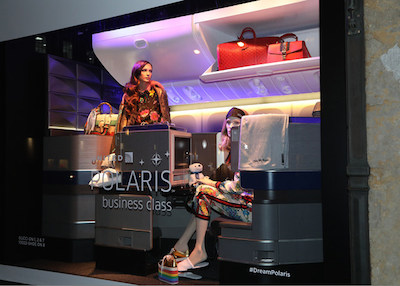“We designed these windows to give passersby the feeling that they are actually walking through the luxurious United Polaris cabin,” said Mark Briggs, executive vice president, creative, Saks Fifth Avenue. “The attention to detail throughout the installation is impressive, from the real United Polaris seats and Saks bedding to the United flight attendant uniforms and Saks’ signature fashion represented by the season’s top ready-to-wear resort looks.”